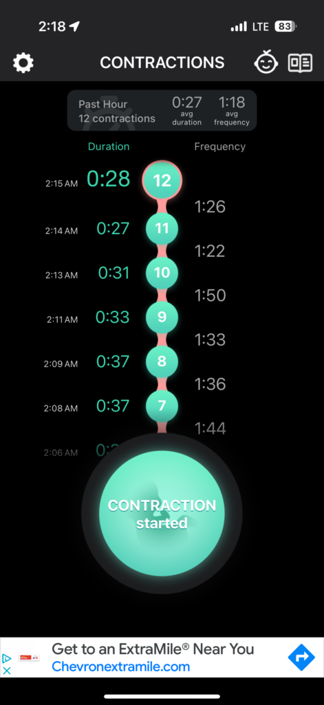 I woke up to my water breaking at around 1:35 AM. At first, I thought I had peed my pants and had cramps, so I changed my clothes and went downstairs to where Daniel had been sleeping to avoid my third trimester snoring. I decided I shouldn’t wake him until I was 100% sure that this was labor and tried to get back into bed, but another gush of fluid came as I pulled myself onto our bed (it is tall; I am not) so I went back downstairs and told Daniel, “Hey, Daniel? You should pack your hospital bag, I’m in labor. No rush though, I still have to call the nurse.”