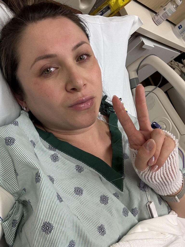 Another nurse, Lydia, came in to set up my IV in my left hand (with a cute gauze glove, as well!) and drew my blood for a CBC panel, red blood cell antibody identification panel, and ABO/RH blood typing screen. An OB came in and checked my dilation — 4.5-5 cm. I had been 1 cm and 60% effaced at my appointment three days prior. I remember very little of the next little bit — I hadn’t gotten the fentanyl yet, but it almost feels like a dream.